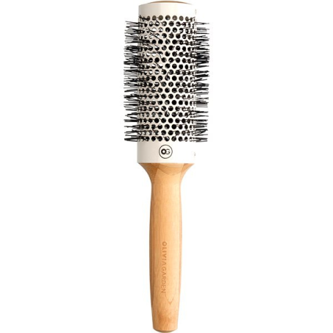 Hajkefe - körkefe, szárításhoz ajánlott, hosszú, rövid, göndör, vékony szálú, erős szálú és sűrű hajra, fa nyél, nejlon sörték, 4,3 cm széles, barna kivitel Az OLIVIA GARDEN Thermo Bamboo Brush HH 43 egy kiváló professzionális hajszárító kefe. Ionizált felülettel ellátott kerámia testtel rendelkezik, amely egyenletes hővezetést biztosít a hajszárítás sorá