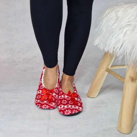 2 kép    Ollike NŐI rövid MAMUSZ hópelyhes, masnis Piros, 38-41