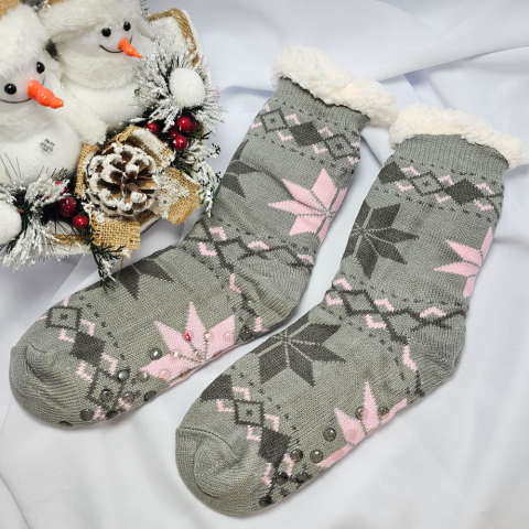 1 kép Ollike Női zoknimamusz hópihés-kockás mintás Világos szürke, 35-38