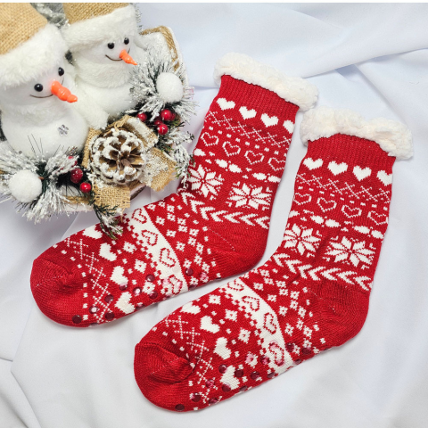 1 kép    Ollike Női zoknimamusz hópihés-szivecskés mintás Piros, 35-38