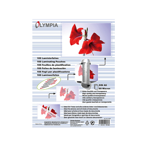 1 kép Olympia lamináló fólia, A6, 80 micron, átlátszó, 100 db, 148 x 105mm (9168)