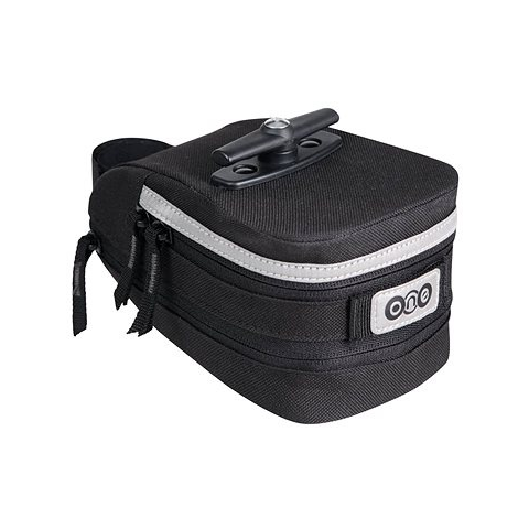 Kerékpáros táska - elhelyezése nyereg alá, térfogata 1,5 l, vízlepergető, mosható, ellátva gyorscsatlakozós rendszerrel, fényvisszaverő elemek, mérete 11 × 16 × 9 cm (Ma×Sz×Mé), tömege 0,2 kg, fekete kivitel A One Drive 3.0 M kerékpáros táska kompakt tárolóhelyet biztosít apróságok számára, amelyeket kéznél kell tartanod kerékpározás közben, mint például kulcsok, pénztárca vagy mobiltelefon. A T-fix gyors