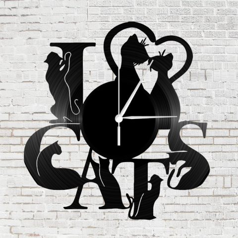 Cica rajongók figyelem! Ez a tündéri falióra mostantól a Te otthonodba is beköltözhet! Bakelit anyagból készült praktikus és bájos óra, melynek felirata is hirdeti: I love cat's!