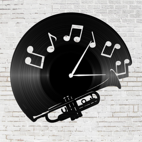 Stílusos és ízléses bakelit óra, amely zenerajongók számára találó ajándékötlet lehet, hiszen a trombita alakú óra olyan fekete, mint a legfeketébb jazz.