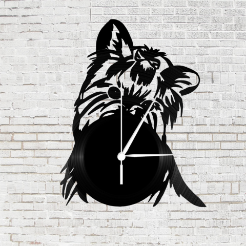 Yorki kutya mintázatú bájos falióra bakelit lemezből, amely jó ajándék ötlet kutyusra vágyó kislányoknak, illetve yorike gazdiknak.
