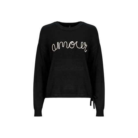 Only Pulóverek ONLKATIA LS TEXT Fekete Kapható női méretben. EU S