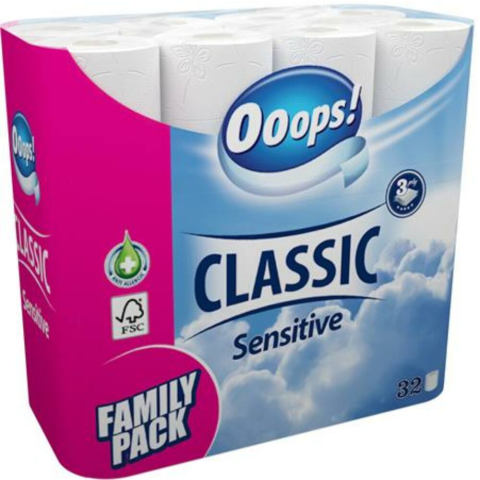 1 kép Ooops Toalettpapír, 3 rétegű, 32 tekercses, OOOPS Classic, sensitive (KHHVP034)