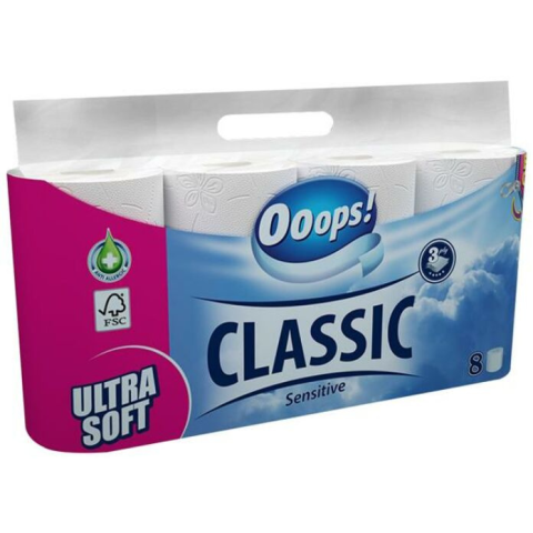 1 kép Ooops Toalettpapír, 3 rétegű, kistekercses, 8 tekercs, OOOPS "Classic", sensitive