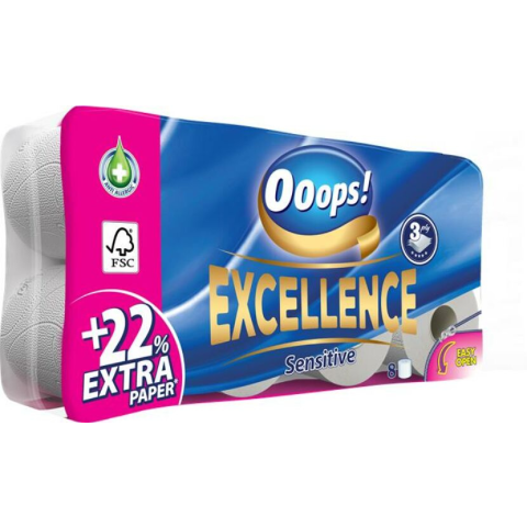1 kép Ooops Toalettpapír, 3 rétegű, kistekercses, 8 tekercs, OOOPS "Excellence"