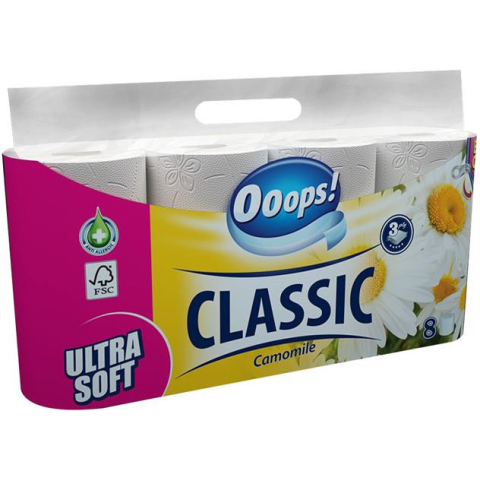 1 kép Ooops Toalettpapír, 3 rétegű, kistekercses, 8 tekercs, OOOPS "Classic", kamilla