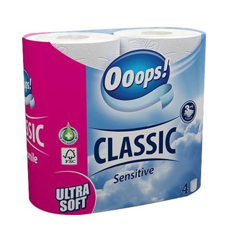 1 kép Ooops! Classic kistekercses toalettpapír 3 rétegű, 4 tekercs sensitive (KTC30042075) (KTC30042075)