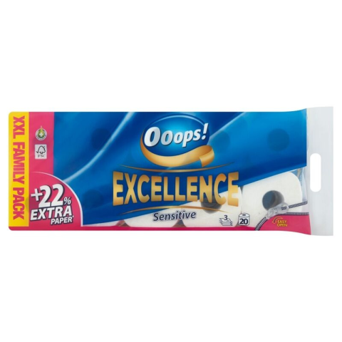 Ooops! Excellence Sensitive 3 rétegű Toalettpapír 20 tekercs