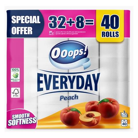 1 kép Ooops! Toalettpapír, 3 rétegű, kistekercses, 32+8 tekercs, "Everyday", barack (KHHVP064) (KHHVP064)