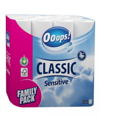 1 kép Ooops! Toalettpapír Ooops! Classic Sensitive 3 rétegű 32 tekercses