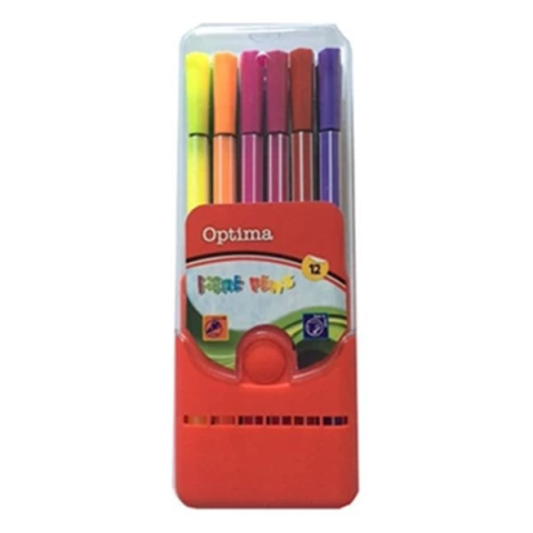 Filctoll OPTIMA műanyag tokos 12 darabos Rostirón készlet. Ruhából könnyen kimosható. Írásvastagság: 2 mm. 3 éves kor alatt nem ajánlott.