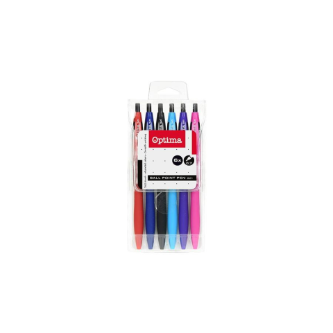 1 kép OPTIMA Golyóstoll készlet OPTIMA nyomógombos 521 vegyes színek 6 darabos