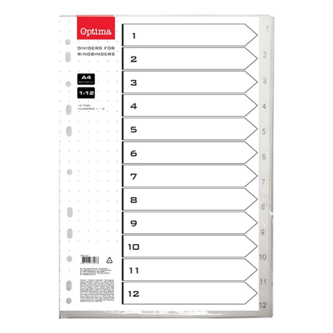 OPTIMA Regiszter OPTIMA A/4 műanyag 1-12 regiszter és tartozékai árgrafikon