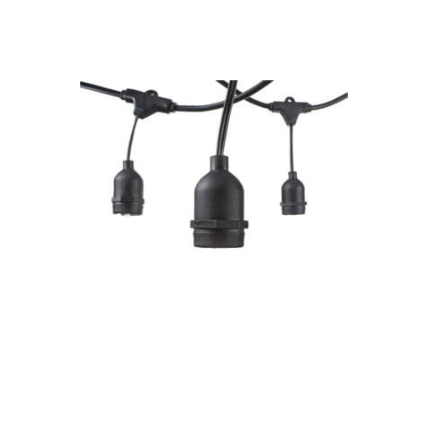 1 kép    Optonica 15db E27 foglalatos fényfüzér (14,4 méter), fekete, IP65, lógó foglalatokkal