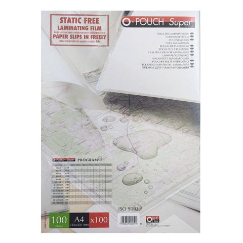 Lamináló fólia OPUS A/4 216x303mm 100 mikron fényes 100/dob Technológia: meleglaminálás. Alkalmazható: értesítések, szórólapok, fényképek laminálására