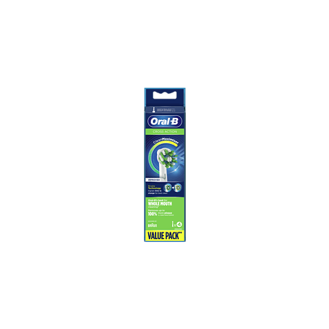 Az Oral-B elektromos fogkefékhez készült prémium minőségű CrossAction pótfej tökéletes, 16 fokos dőlésszögben kialakított sörtéi akár 100%-kal több lepedéket távolítanak el, mint az Oral-B manuális fogkefék. A továbbfejlesztett Oral-B CrossAction fogkefefej CleanMaximiser technológiával rendelkezik, amely a zöld sörtéket sárgává változtatja, az optimális teljesítmény biztosítása, és a kiváló tisztítás érdekében. A különleges sörték mélyen a fogak