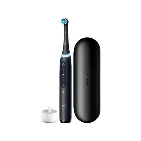 Az iO 5 elektromos fogkefe az Oral-B legkiválóbb technológiáját alkalmazza, amely ötvözi a fogászati eszközök ihlette kerek fogkefefejet és a gyengéd mikrovibrációt kibocsájtó sörtéket, a professzionális tisztaság érzéséért otthonában is. Az okos nyomásérzékelő segít megelőzni a túl erősen vagy túl gyengén végzett fogmosást a fogíny védelme érdekében. A mesterséges intelligencia alapú fogmosás-felismerő funkció a fogmosási stílus felismerésével n