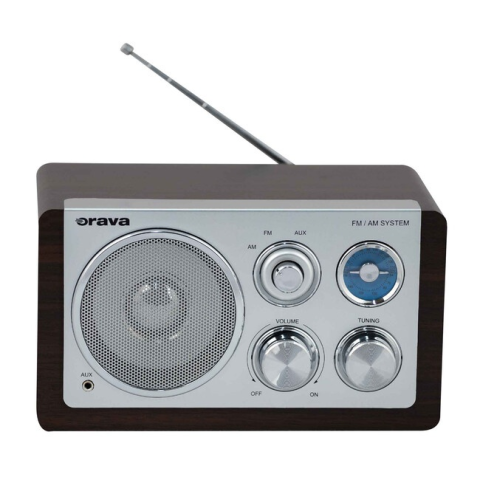 Retro rádió Orava Technikai paraméterek:SzínBarna/EzüstFülhallgató kimenetNemFogyasztás bekapcsolt üzemmódban (W) 14 WHangteljesítmény1x 3,5W (RMS)Méretek (cm)23 x 16 x 13AM rádióIgenFM rádióIgenUSB portNemAUX bemenetIgenBeépített kártyaleolvasóNemSúly (kg)1,4Teleszkópos antennaIgen