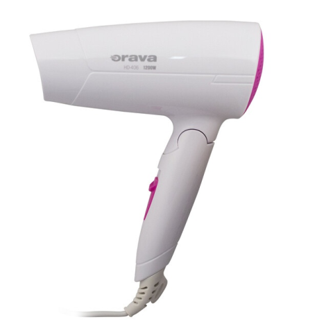 Úti hajszárító OravaBármilyen utazásra becsomagolhatja a bőröndjébe ez a kicsi, de ügyes Orava HD-406 hajszárítót összecsukható markolattal. Az igazi hölgyeknek ugyanis mindig tökéletesen ápolt frizurája. A hajszárító 2 teljesítmény fokozatba és levegő hőmérsékéletre állítható be. Felakasztható a markolatán található kampónak köszönhetően.Technikai paraméterek:SzínFehérMéretek (cm)17,5x7,2x23Felvett teljesítmény1 200 WSúly (kg)0,4Zajszint79 dBIoni