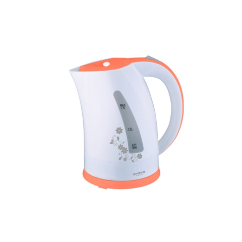 Vízforraló 1,7L Orava, fehér-barackszínForró italok elkészítésénél a legnagyobb segítsége a trendi VK-3417 vízforraló lesz vidám dizájnjával, fehér- és pasztellzöld színkombinációjával és virágos mintájával. Külseje nagyon attraktív, a vizet pedig gyorsan és biztonságosan felmelegíti – víz nélküli működés elleni védelemmel van ellátva, a víz felforrása után pedig automatikusan kikapcsol. Praktikus lecsatolható alapzata 360°-ben leforgatható, teh