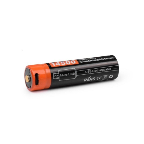 Akkumulátor 14500 USB 750mAh teljesítménnyel, beépített USB csatlakozó! 750mAh nagy kapacitás Beépített túltöltési vagy kisülés elleni védelmi áramkör Több mint 500 újratölthető ciklussal Mérete megegyezik az AA méretű elemmel 20 g, 14,5 mm (átmérő) x
