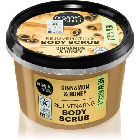 Organic Shop megújító testradír fahéjjal és mézzel, 250 ml - A fahéj és a cukor kombinációja gyengéd és nyugtató kényeztetést nyújt a bőrnek - A méz vitaminokkal látja el és hatékonyan táplálja - Bio fahéj kivonattal, bio mézzel és természetes cukorral