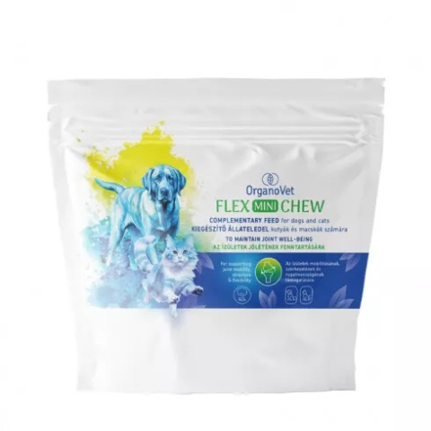 Mi az az OrganoVet Flex 40x Mini Chew? Az aktív életmód vagy az öregedés hatására kedvenceink ízületei gyakran túlterhelődhetnek. Az OrganoVet Flex 40x Mini Chew egy kiegészítő állateledel kutyák és macskák számára, amely glükozamin, kondroitin-szulfát, MSM, Omega-3 zsírsavak és kollagén tartalmával támogatja a porcok és ízületek regenerációját. A kurkuma kivonat és a C-vitamin hozzájárulnak a gyulladás csökkentéséhez és az immunrendszer erősítéséhez.