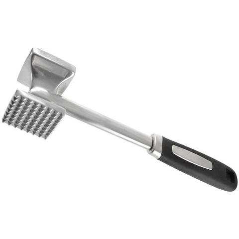 Húsklopfoló - kétoldalas, finom tüskék és sima felület, akasztólyuk, alumínium klopfoló felület, műanyag markolat, tömege 260 g, teljes hossza 26 cm, klopfoló felület mérete 6 × 6 cm (Sz×H) A festive lunch or family gathering can hardly do without a succulent piece of meat. And in order to be perfectly prepared for cooking, it needs to be properly kneaded. The ORION meat mallet A