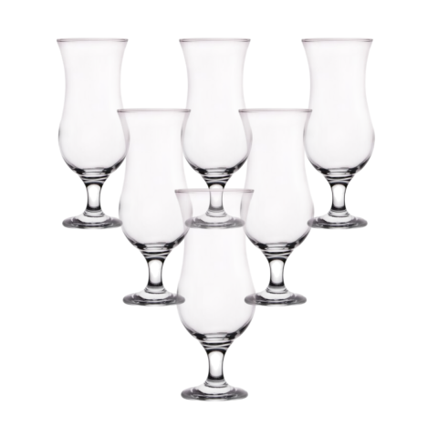 A magas pohár a hurrikán koktél pohárra emlékeztet,