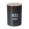 Design bádogdoboz matt fekete felülettel a klasszikus búzaliszt, de a tönköly-, teljes kiőrlésű vagy kukoricaliszt tárolására is alkalmas.A 2,3 literes térfogatával kényelmesen elfér benne egy egész csomag liszt. Szilikonos tömítéssel ellátott bambuszfedél zárja le, megakadályozza a nedvesség bejutását és védi a tartalmat a rovaroktól. Emellett ajánlott a lisztet száraz és sötét helyen tárolni, így még a konyhapulton is biztos lehet benne, hogy a minőség