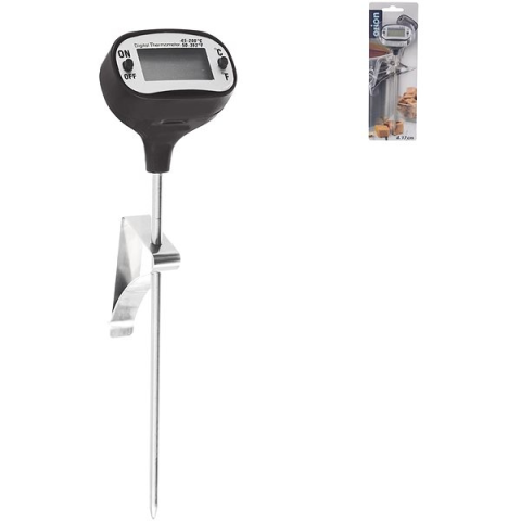 Konyhai hőmérő - típusa: digitális, rendeltetés: főzéshez, hőmérséklet-érzékelőt tartalmazhossza 123 mm, függesztő konzol, 1× LR44 elem táplálja, minimális hőmérséklet -45 °C, maximális hőmérséklet 200 °C A híresen megbízható ORION digitális konyhai hőmérője egy nagyon ügyes konyhai segédeszköz. Főleg ételek készítéséhez javasolt. Egyszerűbbé teszi a hőmérséklet folyamatos ellenőrzését. Egy hőmérséklet