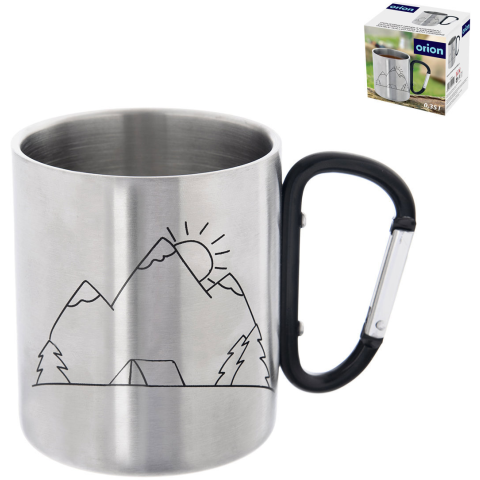 1 kép Orion Duplafalú bögre karabinerrel, rozsdamentes acél, hegy mintás, 0,35 l