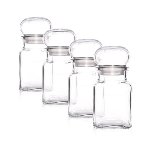 Fűszertartó szett - 4 db a készletben, fedeles és mosogatógépben mosható, 150 ml űrtartalmú üveg tárolóedény, tárolóedény méretei 12 × 5,5 × 5,5 cm (Ma×Sz×Mé), fűszertartók a csomagban Szeretnél találni egy módszert a fűszerek, gyógynövények, magvak vagy teák rendszerezett konyhai tárolására? Az Orion TK150 4 db-os fedeles üveg fűszertartály készlettel pontosan tudni fogod,
