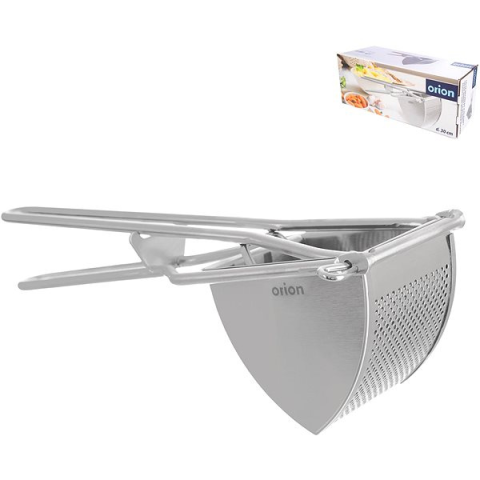 Prés - rozsdamentes acél, burgonyához, főtt burgonya préselésére, burgonyatészták készítéséhez, főtt zöldségek passzírozásához, érett paradicsom, fokhagyma, citrusfélék stb. összenyomásához Az ORION krumplinyomó nagyszerű segítőtárs a burgonya elkészítéséhez. Lehetővé teszi a főtt burgonya könnyű áttörését. Citrusfélék, paradicsom lé préselésére, zöldségek, puha vagy főtt gyümölcsök, fok