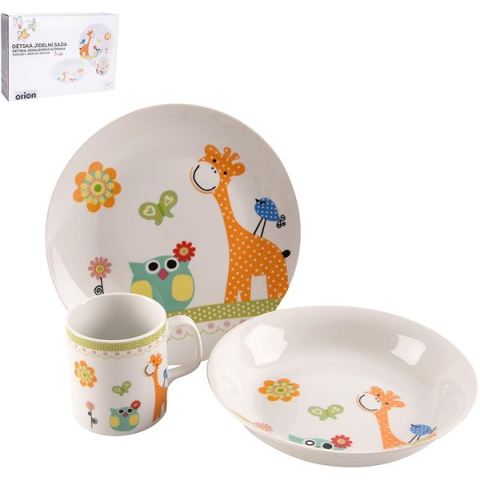 Gyerek étkészlet - porcelán, tál, tányér és bögre a csomag része, alkalmas mosogatógépbe, állatkák motívum, többszínű kivitel Az ORION GIRAFFE gyermek étkészlet zsiráffal és különféle állatokkal díszített. Segítségével egyszerűbb lesz a finomságok elkészítése és tálalása az apróságoknak. A készlet három darabos- tar