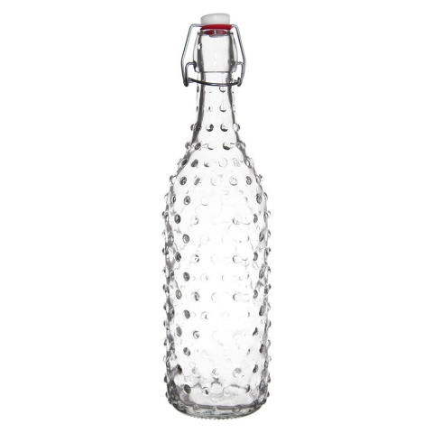 Ha házi készítésű likőrt, szörpöt, gyümölcsleveket, limonádét vagy szeszes italt készít, ez az 1 l-es üveg IDA palack egyszerën megoldja a tartósításukat és tárolásukat .A szilikon tömítés és a csatos zár gondoskodik arról, hogy a tartalma ne folyjon ki. A kis pöttyökből álló műanyag dekorációnak köszönhetően nemcsak praktikus, hanem stílusos üveg is egyben. Nincs más dolga, mint megtölteni a házi készítményével, egy színes masnival díszíte