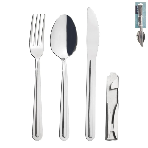 1 kép Orion Kemp rozsdamentes acél kemping evőeszköz + nyitó, 4 db