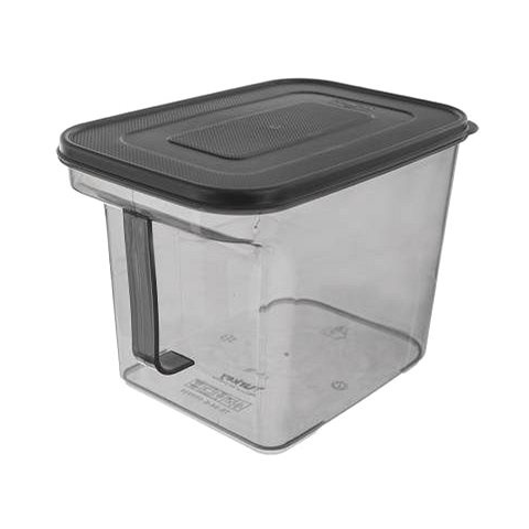 A praktikus, fedeles és fogantyúval ellátott élelmiszer-tároló PP műanyagból készült, és lehetővé teszi a liszt, só, cukor, búzadara vagy zsemlemorzsa, de a kedvenc tészták vagy hüvelyesek tárolását is. A fogantyúval könnyen kivehető a fiókból vagy a konyhaszekrényből. A fedél megakadályozza a kiömlést, a nedvességet, valamint a szekrényben tárolt egyéb élelmiszerek illatának és ízének átvételét, és egymásra is rakható. A doboz füstös színű,