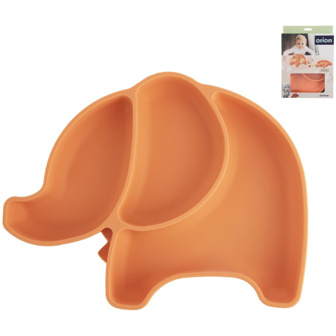 1 kép Orion Osztott gyerek tányér, szilikon, elefánt alak, narancsszín, 23×18 cm (129571)