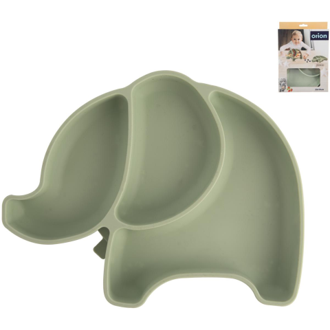 1 kép Orion Osztott gyerek tányér, szilikon, elefánt alak, zöld, 23×18 cm (129572)