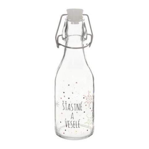 Az Orion márkájú, 0,16 lűrtartalmú , karos zárral és piros-fekete hópelyhekkel nyomtatott Vločka üvegpalack ideális megoldás kedvenc házi italok, például tojáslikőr, karácsonyi puncs, pálinka vagy gyógynövénylikőrök tárolására. A „ŠŤASTNÉ A VESELÉ” (Boldog karácsonyt) felirat karácsonyi hangulatot kölcsönöz a palacknak, így tökéletes csomagolásként szolgálhat folyékony ajándékokhoz szeretteinek.A praktikus klipszes zárral, műanyag dugóval é