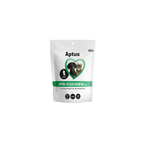 Aptus Apto-Flex Chew Mini rágótabletta – Nagy mennyisgű glükozamint, MSM-et és kondroitin-t tartalmazó, rágótabletta kistestű kutyák valamint macskák számára, az ízületek védelme, rugalmassága és mozgékonysága érdekében. Amennyiben kedvence a kemény tablettákat vagy a szirupot nem hajlandó elfogadni, puha állaga miatt különösen ajánlott. Megelőzés céljából is adható.