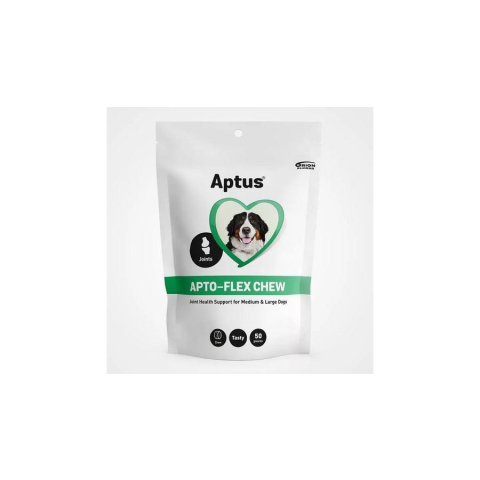 Aptus Apto-Flex Chew rágótabletta – Nagy mennyisgű glükozamint, MSM-et és kondroitin-t tartalmazó, rágótabletta közepes és nagytestű kutyák számára, az ízületek védelme, rugalmassága és mozgékonysága érdekében. Amennyiben kedvence a kemény tablettákat vagy a szirupot nem hajlandó elfogadni, puha állaga miatt különösen ajánlott. Megelőzés céljából is adható.
