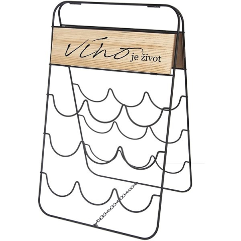 Bortartó állvány - fekete, fém, fa tetejű, "víno je život" felirattal, akár 9 palack bor tárolására is alkalmas Stojan na víno ORION RADKA ocení všichni milovníci vína, kteří hledají praktické a elegantní řešení pro uskladnění své sbírky. Tento prostorově úsporný stojan přehledně a stylově uloží až 9 lahví. Je