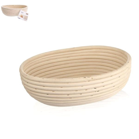 Kelesztő kosár - rattan, fonott, mérete 9 × 28 × 22 cm (Ma×Sz×H), bézs kivitel Az Orion ovális rattan kosár segít a friss házi kenyér elkészítésében. A kosarat többféle módon használhatod: tészta készítésére, kenyér tárolására, sütemények kiszolgálására, vagy dekorációké