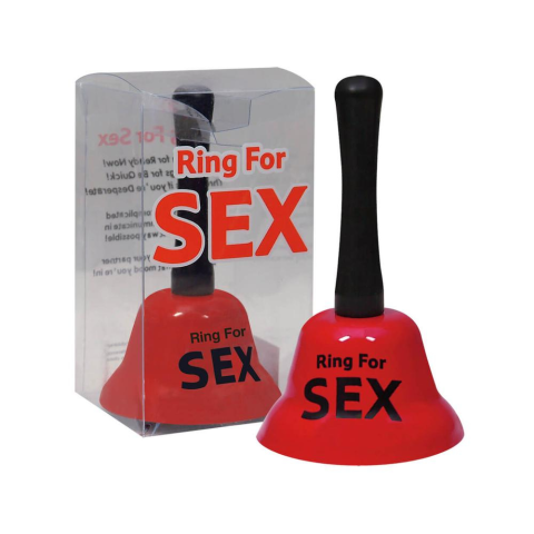 - Piros fémcsengettyű, fekete felirattal: Ring for sex (azaz csengess, ha szex kell). A hálószobák elengedhetetlen kelléke.
